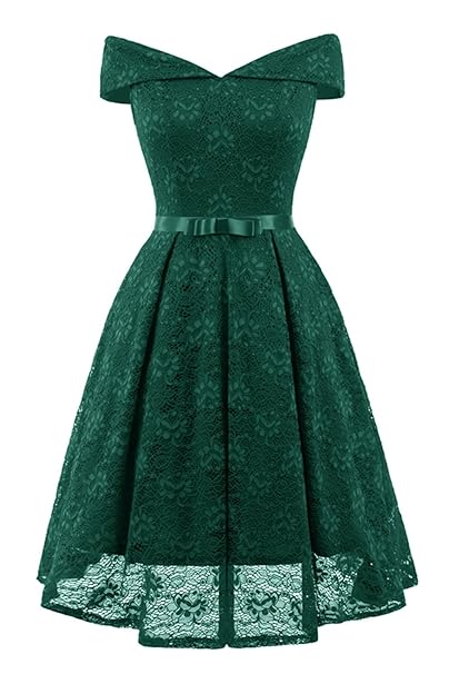Misshow Elegant Carmenausschnitt Spitze Kleid Cocktailkleid