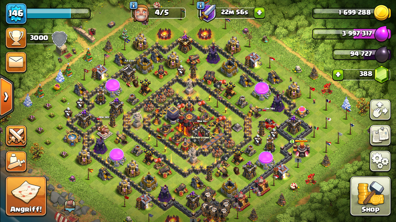 Die Base Fur Trophaen Verteidigung Vom Rh 10 Rathaus Level 10