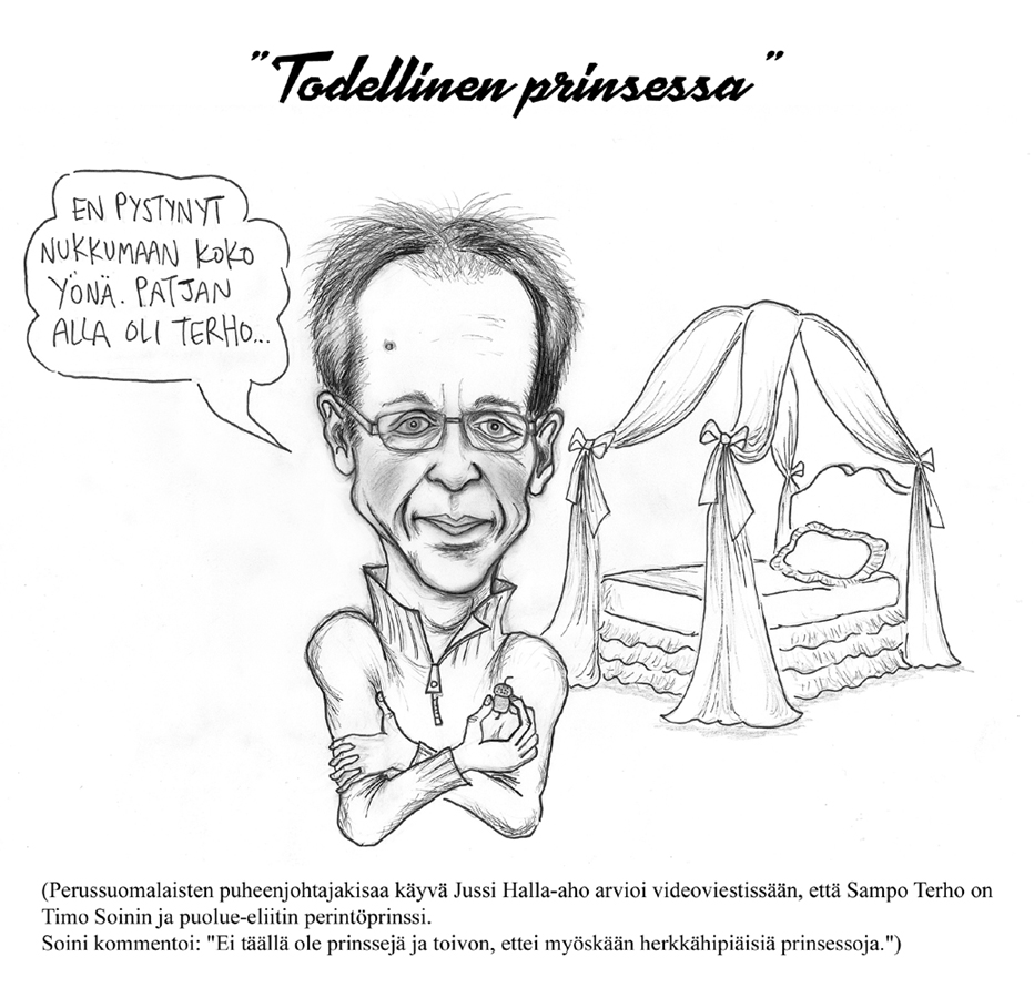 Paa Liukuovien Valissa Jussi Halla Aho Karikatyyrissa