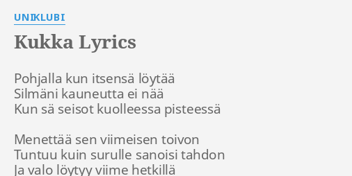 Kukka Lyrics By Uniklubi Pohjalla Kun Itsensa Loytaa